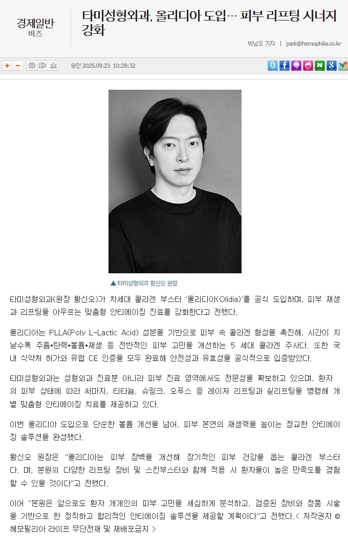 [ 의료칼럼 ] 타미성형외과•피부과, 올리디아 도입… 피부 리프팅 시너지 강화